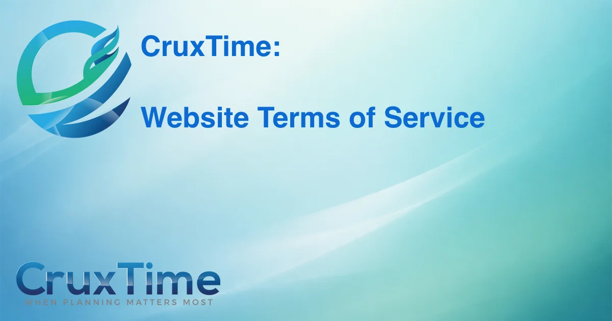Welcome to the website of CruxTime LLC (“CruxTime,” “we,” “our,” or “us”). By accessing or using this website (the “Site”), you agree to the following Terms of Service (“Terms”). If you do not agree to these Terms, please discontinue use of the Site.